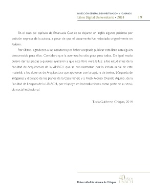 Facultad de Lenguas de la UNACH, por el apoyo en las traducciones como parte de su servi-