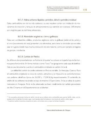 nos para el encendido. En forma molida o como “cisco” se agrega entre cada capa de ladrillos.