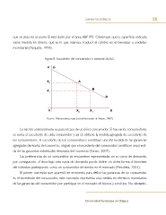 elementos teóricos 55 que se sitúa en el punto B está dado por el área ABP1P0. Obsérvese que la superfcie indicada viene medida en dinero, que es lo que interesa: traducir el cambio en el bienestar a unidades monetarias (Azqueta, 1994). Figura 8. Excedente del consumidor o variación del EC Fuente: Elaboración propia (con información de Varian, 2007) Lo escrito anteriormente es para el caso de un único consumidor. Si hay varios consumidores se suma el excedente de cada consumidor y así se obtiene la medida agregada de excedente de los consumidores. El excedente de los consumidores constituye una útil medida de las ganancias agregadas derivadas del comercio, al igual que el excedente del consumidor constituye una medi- da de las ganancias individuales derivadas del comercio (Varian, 2007). Las preferencias de un consumidor se encuentran representadas en su curva de demanda, por consiguiente, el área bajo esta curva de demanda puede defnir en cierta forma el bienestar del individuo participando como un consumidor de bienes en el mercado (Mendieta, 2007). El primer concepto que apareció en economía para defnir las ganancias de un consumidor es el excedente del consumidor, este concepto representa una medida en términos monetarios de las ganancias del consumidor por participar en el mercado de bienes y servicios. No obstante, Universidad Autónoma de Chiapas