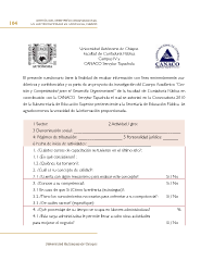 GESTIÓN DEL DESEMPEÑO ORGANIZACIONAL 104 EN LAS MICROEMPRESAS EN TAPACHULA, CHIAPAS Universidad Autónoma de Chiapas Facultad de Contaduría Pública Campus IV y CANACO Servytur Tapachula El presente cuestionario tiene la fnalidad de recabar información con fnes eminentemente aca- démicos y confdenciales y es parte de un proyecto de investigación del Cuerpo Académico “Ges- tión y Competitividad para el Desarrollo Organizacional” de la Facultad de Contaduría Pública en coordinación con la CANACO -Servytur Tapachula el cual se autorizó en la Convocatoria 2010 de la Subsecretaría de Educación Superior perteneciente a la Secretaría de Educación Pública. Le agradeceremos la veracidad de la información proporcionada. 1 Sector: ______________________ 2 Actividad / giro: ___________________ 3 Denominación social: _________________________________________________ 4: Régimen de tributación: ____________________ 5 Personalidad jurídica: _______ 6 Fecha de inicio de actividades: _____________________________ 1. ¿Cuántos cursos de capacitación se tuvieron en el último año?: ____ 1.1 ¿En qué consistieron? : 1.2 ¿Quiénes los tomaron?: 2. ¿Cuál es su concepto de calidad?: 2.1 ¿Cuenta con algún mecanismo para evaluar este concepto?: Si / No 3. ¿Conoce a su competencia?: Si / No 3.1 En caso de que Si ¿Cómo la enfrenta (estrategias)?: 3.2 ¿Tiene los conocimientos necesarios para enfrentar a su competencia?: Si / No 3.3 ¿De cuáles carece? (especifque): 4. ¿Qué porcentaje de su tiempo se ocupa en labores administrativas? _____% 4.1 ¿Esta carga administrativa le permite llevar a cabo otras actividades para mejorar el negocio? Si / No Universidad Autónoma de Chiapas