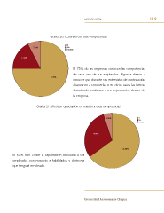 metodología 119 Gráfca 20. ¿Cuentan con esas competencias? El 75% de las empresas conocen las competencias de cada uno de sus empleados. Algunos dieron a conocer que durante sus entrevistas de contratación alcanzaron a conocerlas o en otros casos las fueron obteniendo conforme a sus experiencias dentro de la empresa. Gráfca 21. ¿Reciben capacitación en relación a estas competencias? El 65% dice SI dar la capacitación adecuada a sus empleados con respecto a habilidades y destrezas que tenga el empleado. Universidad Autónoma de Chiapas
