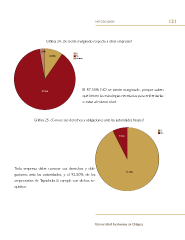 metodología 121 Gráfca 24. ¿Se siente marginado respecto a otras empresas? El 87.50% NO se siente marginado, porque saben que tienen las estrategias necesarias para enfrentarlas o estar al mismo nivel. Gráfca 25. ¿Conoce sus derechos y obligaciones ante las autoridades fscales? Toda empresa debe conocer sus derechos y obli- gaciones ante las autoridades, y el 92.50% de los empresarios de Tapachula Si cumple con dichos re- quisitos. Universidad Autónoma de Chiapas