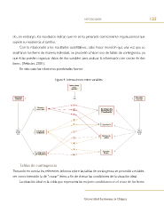 metodología 125 do, sin embargo, los resultados indican que no se ha generado conocimiento organizacional que supere su resistencia al cambio. Con lo relacionado a los resultados cuantitativos, cabe hacer mención que una vez que se analizaron los ítems de manera individual, se procedió a hacer uso de tablas de contingencia, ya que éstas pueden organizar datos de dos variables para analizar la información con cruces de dos ítems. (Webster, 2001). En este caso las relaciones ponderadas fueron: Figura 4. Interacciones entre variables Tablas de contingencia Tomando en cuenta los referentes teóricos sobre las tablas de contingencia se procedió a estable- cer como intensión la de “cruzar” ítems a fn de checar las condiciones de la situación ideal. La situación ideal es la celda que representa las mejores condiciones en el cruce de los ítems. Universidad Autónoma de Chiapas