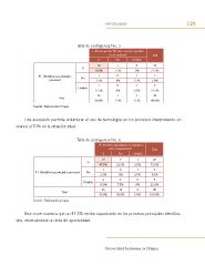 metodología 129 Tabla de contingencia No. 5 1. ¿Piensa que las TIC tiene un uso específco en su empresa? Total Si No Omitido 28 1 0 29 Si 70.0% 2.5% .0% 72.5% 41. ¿Identifca sus principales 1 0 1 2 procesos? No 2.5% .0% 2.5% 5.0% 7 0 2 9 Omitido 17.5% .0% 5.0% 22.5% 36 1 3 40 Total 90.0% 2.5% 7.5% 100.0% Fuente: Elaboración Propia. Esta asociación permite vislumbrar el uso de tecnologías en los procesos interpretando un avance al 70% en la situación ideal. Tabla de contingencia No. 6 19. ¿Reciben capacitación en relación a estas competencias? Total Si No Omitido 19 9 1 29 Si 47.5% 22.5% 2.5% 72.5% 1 0 1 2 41. ¿Identifca sus principales procesos? No 2.5% .0% 2.5% 5.0% 6 3 0 9 Omitido 15.0% 7.5% .0% 22.5% 26 12 2 40 Total 65.0% 30.0% 5.0% 100.0% Fuente: Elaboración propia. Este cruce muestra que un 47.5% recibe capacitación en los procesos principales identifca- dos, observándose un área de oportunidad. Universidad Autónoma de Chiapas