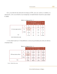 metodología 133 En la zona ideal de esta interacción de localiza el 55%, pues aún cuando se considera a la capacitación, como una inversión un porcentaje bajo, ha implementado mecanismos para evaluar la calidad. Tabla de contingencia No. 13 3. ¿Piensa que las TIC le pueden ayudar en su empresa? Total Si No Omitido 8 0 0 8 Si 20.0% 0% .0% 20.0% 21 0 2 23 43. ¿Presentan algún problema? No 52.5% 0% 5.0% 57.5% 8 0 1 9 Omitido 20.0% 0% 2.5% 22.5% 37 0 3 40 Total 92.5% 0% 7.5% 100.0% Fuente: Elaboración propia. La zona ideal muestra el 52.5% enfatizando un área de oportunidad para el área de sistemas computacionales. Tabla de contingencia No. 14 22. ¿Conoce las últimas reformas fscales? Total Si No Omitido Si 3 5 0 8 Si 7.5% 12.5% .0% 20.0% 16 7 0 23 43¿Presentan algún problema? No 40.0% 17.5% .0% 57.5% 4 4 1 9 Omitido 10.0% 10.0% 2.5% 22.5% 23 16 1 40 Total 57.5% 40.0% 2.5% 100.0% Fuente: Elaboración propia. Universidad Autónoma de Chiapas