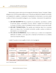 GESTIÓN DEL DESEMPEÑO ORGANIZACIONAL 82 EN LAS MICROEMPRESAS EN TAPACHULA, CHIAPAS Retomando los alcances de los tipos de Investigación (Hernández Samperi, Fernández Collado, & Baptista Lucio, 2010) se puede establecer que, en vista de que solamente se relatará lo encontrado, sin manipulación de variables y considerando el levantamiento de información en una sola ocasión se defne el Diseño de la presente Investigación como Descriptiva, Transeccional y No experimental. 1. ESTUDIO DESCRIPTIVO: Busca especifcar las propiedades, características y perfles de personas, grupos, comunidades, procesos, objetos o cualquier otro fenómeno que se someta a un análisis y ofrece la posibilidad de hacer pronósticos aunque sean iniciales. 2. ESTUDIO TRANSECCIONAL: Son aquellos que recolectan datos en un momento dado, en un tiempo único. Su propósito es describir variables y analizar su incidencia e interrelación en un momento dado. 3. ESTUDIO NO EXPERIMENTAL: Son los estudios que se realizan sin la manipulación deliberada de variables y en los que sólo se observan los fenómenos en su ambiente natural para después analizarla. La tabla 9 muestra de manera gráfca el diseño de la investigación: Identifcación de Fases a investigar ¿Qué? Tópico Para establecer como elemento… ¿La Fase? I Consistencia de los criterio de Contraste de uso de las II III Para establecer ¿El Nombre de la fase? Establecer las variables a evaluar Describir la realidad Contrastar la empírea de sujetos Levantamiento primario estudio dimensiones de uso ¿El Para qué? Entrevista ¿La Técnica? desde un enfoque empírico Cuestionario tipo con las de las empresas Entrevista ¿El Enfoque? Cualitativo Funcionarios de CANACO Microempresas de acuerdo Empresarios con características ¿El Quiénes? Servytur en Tapachula padrón asignado por CANACO de sujetos tipo ¿El qué se obtiene? Criterios de inclusión de variables Diagnóstico Brechas Fuente: Elaboración propia. Universidad Autónoma de Chiapas