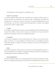 metodología 83 Las pretensiones de esta investigación se establecieron para: Su área de conocimiento Los estudios organizacionales toman mayor importancia en los tiempos modernos dado el di- namismo evolutivo de conocimiento de las ciencias sociales y administrativas. Desarrollar esta investigación por un lado para un área poco socorrida en la producción bibliográfca que son las Microempresas y, por otro lado, conformar desde la perspectiva de la Gestión como disciplina que permea los estudios Organizacionales. La región En este plano se podría describir una forma en la que la actividad comercial se fundamente desde la perspectiva Científca, sin dejar de lado la empírea, pero tomándola como base para establecer programas de intervención más acordes a la realidad del contexto. La institución Las tres funciones sustantivas de la Universidad Autónoma de Chiapas son la docencia, la Investi- gación y la extensión. Con esta investigación se pretende impactar en la investigación al producir conocimiento aplicado, la extensión al transferir tecnología y en la docencia al retroalimentar la práctica educativa. El país Las Líneas de Generación y Aplicación del conocimiento al ser cultivadas pretenden generar co- nocimiento disciplinario que se agregue al engranaje de la dinámica económica y que impulse a su vez alternativas de solución a problemas de Gestión. Los otros beneficiarios De manera colateral, al impactar en la operatividad de las Microempresas se benefcian los traba- jadores y la sociedad en general pues al concretar el Proceso de Reproducción Social en sus tres Universidad Autónoma de Chiapas