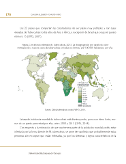 178 CLAUDIA ELIZABETH CHACÓN RICO Los 22 países que comparten las características de ser países muy poblados y con tasas elevadas de Tuberculosis todos ellos de Asia o África, a excepción de Brasil que ocupa el puesto número 15 (OMS, 2007). Figura 2. Incidencia estimada de Tuberculosis, 2013. La desagregación por escala de color corresponde a nuevos casos de tuberculosis en todas sus formas, por 100,000 habitantes, por año. Fuente: Global tuberculosis control, WHO, 2014. La tasa de incidencia mundial de tuberculosis está disminuyendo, pero a un ritmo lento, me- nos de un punto porcentual por año, entre 2000 y 2013 (OMS, 2014). Con respecto a la estimación de que una tercera parte de la población mundial podría estar infectada por la forma latente de M. tuberculosis, se pone de manifesto que probablemente estas personas aún no sepan que están infectadas, ya que los síntomas y signos característicos de la Universidad Autónoma de Chiapas