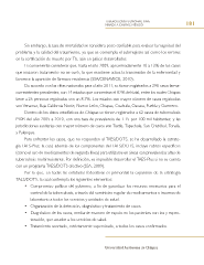 TUBERCULOSIS PULMONAR, UNA MIRADA A CHIAPAS, MÉXICO 181 Sin embargo, la tasa de mortalidad se considera poco confable para evaluar la magnitud del problema y la calidad del tratamiento, ya que se contempla el subrregistro así como los errores en la certifcación de muerte por Tb, aún en países desarrollados. Es conveniente considerar que, hasta el año 2009, aproximadamente 10 a 13% de los casos que iniciaron tratamiento no se curó, lo que mantiene activa la transmisión de la enfermedad y favorece la aparición de fármaco resistencia (SSA/CENAVECE, 2010). De acuerdo con las cifras nacionales para el año 2011, se tienen registrados a 298 casos farma- corresistentes prevalentes, con 14 estados que concentran el 82% del total, entre los cuales Chiapas tiene a 26 personas registradas con un 8.7%. Los estados con mayor número de casos registrados son Veracruz, Baja California Norte, Nuevo León, Chiapas, Coahuila, Oaxaca, Puebla y Guerrero. Dentro de los datos estadísticos de Chiapas se tienen registrados a 62 casos de tuberculosis MDR del año 2005 a 2010, con una tasa de prevalencia de 1.15 por 100 mil habitantes; y las jurisdicciones sanitarias con mayor número de casos son Tuxtla, Tapachula, San Cristóbal, Tonalá, y Palenque. Para enfrentar los casos, que no responden al TAES/DOTS, se ha desarrollado la estrate- gia TAES-Plus; la cual, además de los componentes del TAES/DOTS, incluye rubros específcos (como el uso de medicamentos de segunda línea) para utilizarse en áreas con prevalencias altas de tuberculosis multirresistente. Por defnición, es imposible desarrollar el TAES-Plus si no se cuenta con un programa TAES/DOTS efectivo (SSA, 2009). Por lo que, en todas las entidades federativas es primordial la expansión de la estrategia TAES/DOTS, la cual contempla los siguientes elementos: • Compromiso político del gobierno, a fn de garantizar los recursos necesarios para el control de la tuberculosis, a través del suministro regular de medicamentos e insumos de laboratorio a todos los servicios y unidades de salud. • Organización de la detección, diagnóstico y tratamiento de casos. • Diagnóstico de los casos, mediante examen de esputo en los pacientes con tos y expec- toración, que acuden a los servicios de salud. • Tratamiento acortado, estrictamente supervisado, a todos los casos confrmados. Universidad Autónoma de Chiapas