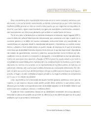 TENDENCIAS DE LOS INDICADORES DE SALUD Y GÉNERO EN MÉXICO. UN ANÁLISIS SOCIODEMOGRÁFICO 277 Estas características de la masculinidad dominante son en sí mismo requisitos extremos y por ello tienen, como se ha venido mencionando, profundas consecuencias ya que como menciona Kauffman (2008), generan en ellos un enorme dolor puesto que sus exigencias son imposibles de alcanzar y, por tanto, siguen experimentando una gama de necesidades y sentimientos considera- dos inconsistentes con dicha masculinidad lo que también se vuelve fuente de temor. Por el otro lado, la feminidad en su vertiente dominante se entiende, según Lagarde (2001), como la distinción cultural históricamente determinada, que caracteriza a la mujer a partir de su condición genérica y la defne de manera contrastada, excluyente frente a la masculinidad, sus características son asignadas desde la masculinidad dominante y representan un modelo natural, eterno y ahistórico. Este modelo tienen un patrón regular de exigencia en el que se encuentra como base que la identidad femenina es para y de los otros por lo que las mujeres son: depositarias del cuidado de, generalmente, menores y enfermos, aunque también de los hombres; por ello, cualidades como la sumisión, la compasión, la abnegación, y la sensibilidad son las más adecuadas. Como son seres para otros siguiendo a Basaglia (1987) el placer les queda vedado y por tanto la sexualidad sólo es permitida para la reproducción o la complacencia de los hombres y por lo tanto dispuesta a los servicios a la sociedad con su representantes en la política pública, la medicina y el patriarcado. Además, esto acarrea que la estética femenina sea meramente instrumental. Por otro lado, en tanto que para la masculinidad pertenece el espacio público para las mujeres es el espacio privado, el hogar y al estar confnadas al espacio privado se les niega la actividad y la competencia por lo que se les adjudica la pasividad. Estas características de la feminidad dominante también generan problemas serios para las mujeres, ya que tampoco ninguna mujer puede cumplir dichos atributos, lo que genera contra- dicciones por no haber correspondencia entre la identidad asignada con la identidad vivida lo cual acarrea procesos complejos, dolosos y confictivos (Ibíd.). A partir de estas características básicas de las identidades dominantes de la masculinidad y feminidad se piensa será posible comprender las diferencias en los diferentes aspectos de la salud analizados que se presentan a continuación. Universidad Autónoma de Chiapas