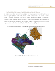 MORTALIDAD MATERNA EN MUNICIPIOS VULNERABLES DE CHIAPAS. UN ANÁLISIS 319 HACIA LAS METAS DEL MILENIO La Mortalidad Materna en Municipios Vulnerables de Chiapas La Región de los Altos concentra los municipios con mayores proporciones de hablantes de lengua indígena: (80%) de habla tsotsil y tzeltal, también es la que más reúne pobreza extrema (97%). Esta región comprende 17 municipios: Aldama, Amatenango del Valle, Chalchihuitán, Chamula, Chanal, Chenalhó, Huixtán, Larráinzar, Mitontic, Oxchuc, Pantelhó, San Cristóbal de las Casas, San Juan Cancuc, Santiago El Pinar, Tenejapa, Teopisca y Zinacantán; conforme a la nueva regionalización, recibe el nombre de Región V Altos Tsotsil-tseltal (Mapa 1). Mapa 1. Municipios de la Región Tsotsil-Tseltal de Chiapas, según la nueva regionalización. Fuente: («ALTOS.pdf», s. f.)(«regionalizacion_chiapas.pdf», s. f.). Universidad Autónoma de Chiapas
