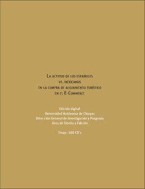 LA ACTITUD DE LOS ESPAñOLES VS. mExICANOS EN LA COmPRA DE ALOjAmIENTO TURÍSTICO EN EL E-COmmERCE Edición digital: Universidad Autónoma de Chiapas Dirección General de Investigación y Posgrado Área de Diseño y Edición Tiraje: 300 CD´s
