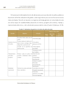 Cuadro 3. Indicadores de gestión en el cultivo de palma de aceite