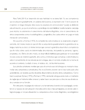 De acuerdo a Hymes (1972), la competencia comunicativa se va alcanzando progresi-