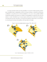 82 ASPECTOS SOCIOCULTURALES DE LA POBREZA EN CHIAPAS Los mapas permiten focalizar las áreas geográfcas con mayores niveles de pobreza alimen- taria, mortalidad infantil y desigualdad económica a lo largo del tiempo, e identifcar las diferencias y similitudes en los patrones de los mismos indicadores, con lo que se hace posible identifcar características distintivas de la pobreza en distintas zonas geográfcas, en particular entre entornos urbanos y rurales. Entendiendo que el propio espacio puede generar condiciones de marginaliza- ción espacial de las zonas más pobres, en los lugares más dispersos del territorio o en los cinturo- nes de pobreza de las áreas metropolitanas más importantes del estado. Mapa 9. Tasas de mortalidad infantil municipal, 1990, 2000 y 2010 Fuente: Elaboración propia con datos de CONEVAL e INEGI. Universidad Autónoma de Chiapas
