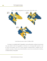 84 ASPECTOS SOCIOCULTURALES DE LA POBREZA EN CHIAPAS Mapa 11. Índice de desigualdad de Gini municipal, 1990, 2000 y 2010 Fuente: Elaboración propia con datos de CONEVAL e INEGI. Los mapas de mortalidad infantil, desigualdad y pobreza alimentaria constituyen instrumentos clave para analizar la dimensión geográfca en términos de su heterogeneidad espacial, no solo en función del territorio, sino de un cúmulo creciente de determinantes y variables socio-de- mográfcas asociadas al mismo que permiten identifcar zonas de alta concentración de pobreza, mortalidad infantil y desigualdad. Universidad Autónoma de Chiapas