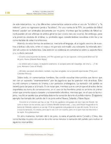 ción al cuerpo de las futbolistas. Esta atención se evidencia en comentarios sobre su aspecto físico