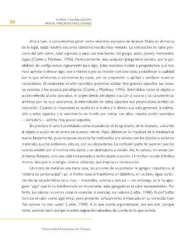 sí mismo flotando, sino que está incorporado a cierto objeto o acción. Un trofeo no vale el trofeo