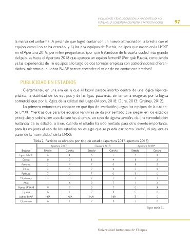 Tabla 2. Partidos celebrados por tipo de estadio (apertura 2017-apertura 2018)